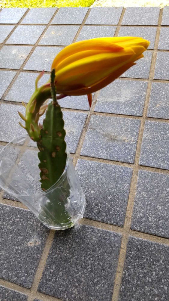 もぅ何年か前の 咲かないサボテンかと思われていた…母も観たことがなかったサボテンに初めて花芽がついたとき, 嬉しくてわくわくしていた挙げ句に この子の 首もとからぽろり⤵️🤧