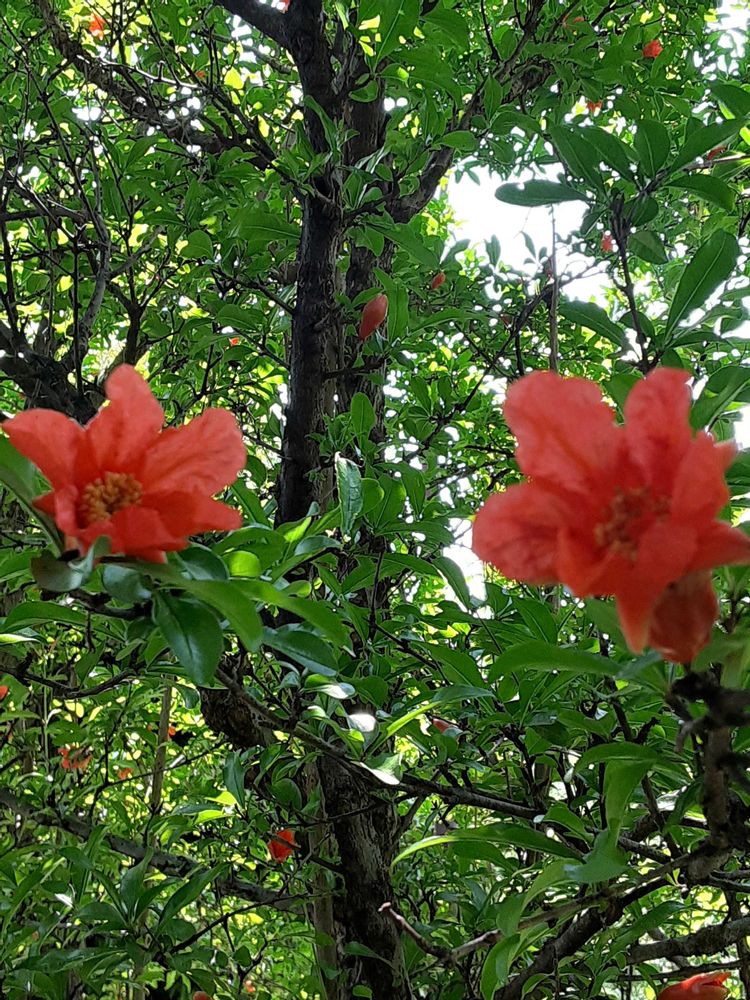 2種のザクロの花、八重咲きも可愛いです🌻💕