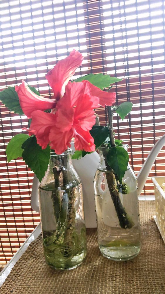 水耕で育てたハイビスカス 今日お花が咲きました 蕾の時に落ちなくてよかった💕🤗