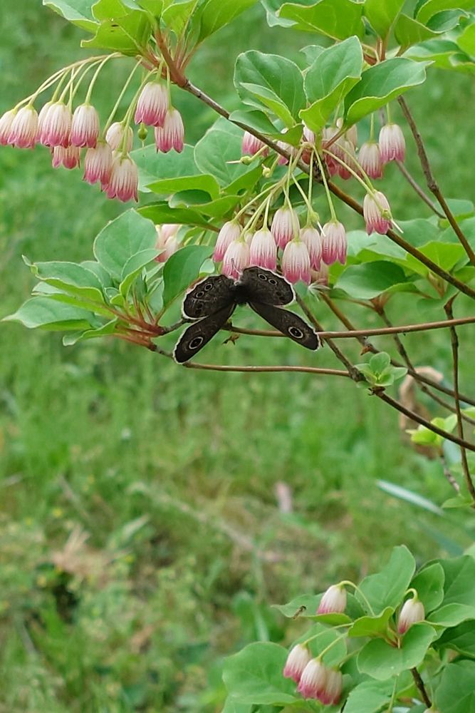 サラサドウダンにウラナミジャノメさんでしょうか?ジャノメチョウの種類は沢山あって探すのも楽しいですね💓