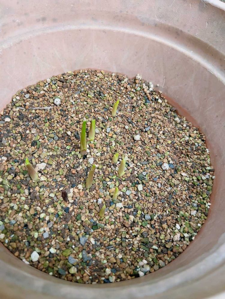 埋まったまま、ほったらかし冬越ししたみたいです。こちらはかなり詰まって芽吹いてるけど、大丈夫なのかな?🤔