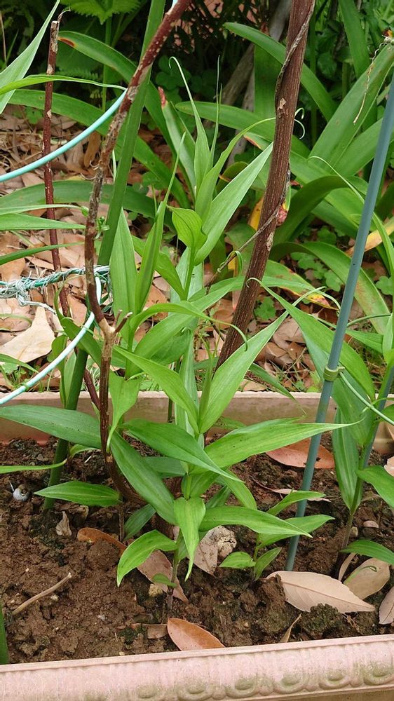 年末にプランターごと頂いたグロリオサが順調に成長中!