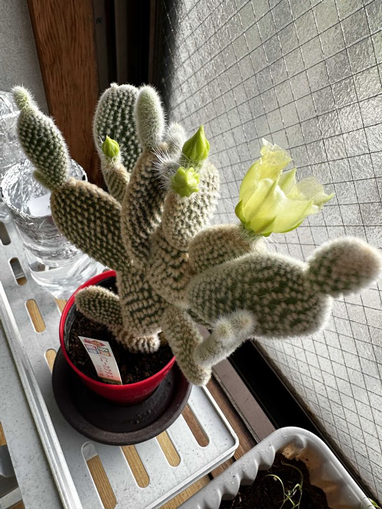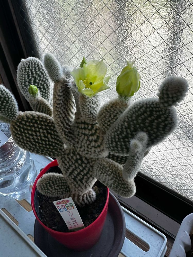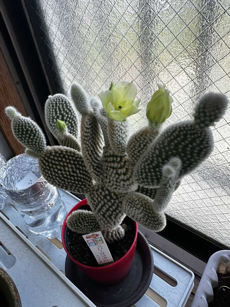 バニーカクタス今日と昨日で一つずつ咲きました🌸