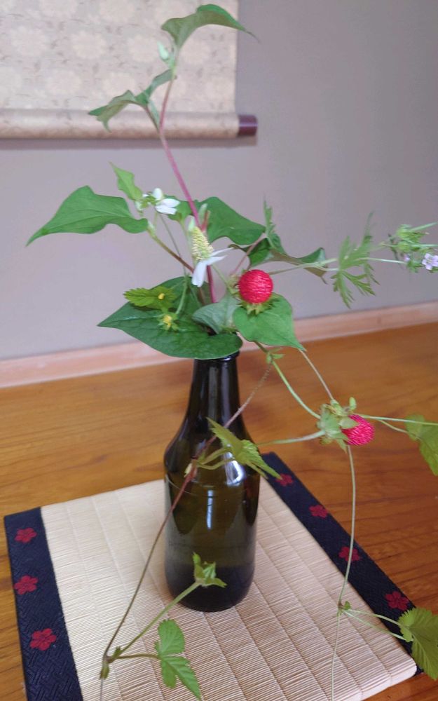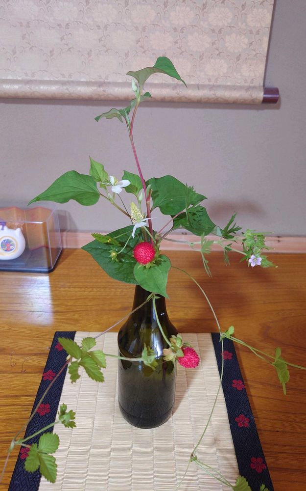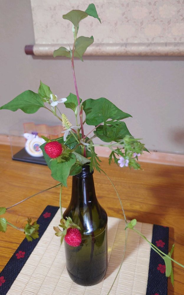 今年も🤍ドクダミと🍓ヘビイチゴを生けました😉