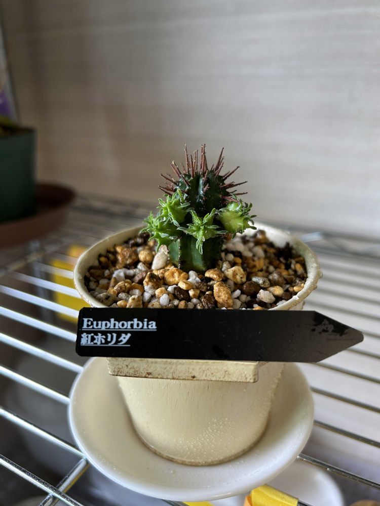 棘があるのでサボの仲間と思ってたら、多肉ちゃんでした。名前は紅ホリダです。よろしくね😄