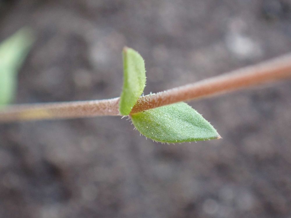 茎には細かい産毛がたくさん生えていました。小さな葉の周りにギザギザがありました。(②)