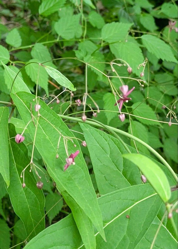 ②山麓の半日陰の草地に生える多年草で茎の先に葉のない花序が弦状になり他の植物に絡みついてた🌿