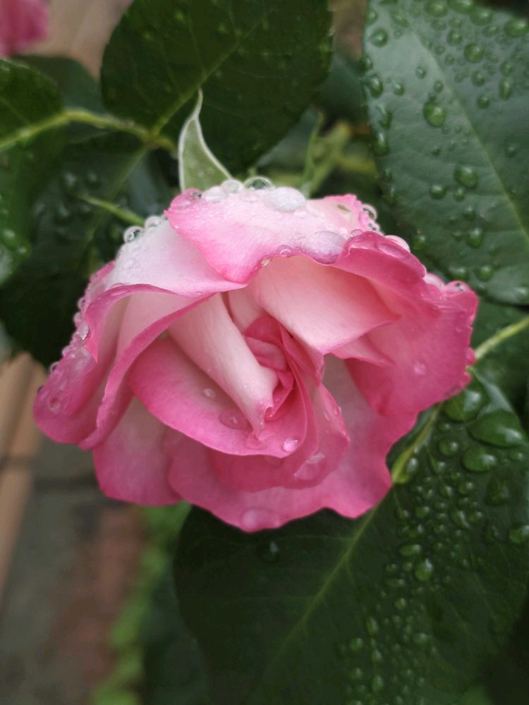 ☔の日のバラとニューギニアインパチェンスです🫧🫧