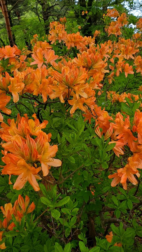 近くの公園のレンゲツツジ咲き始めました。天気が良くなるといいなぁ……