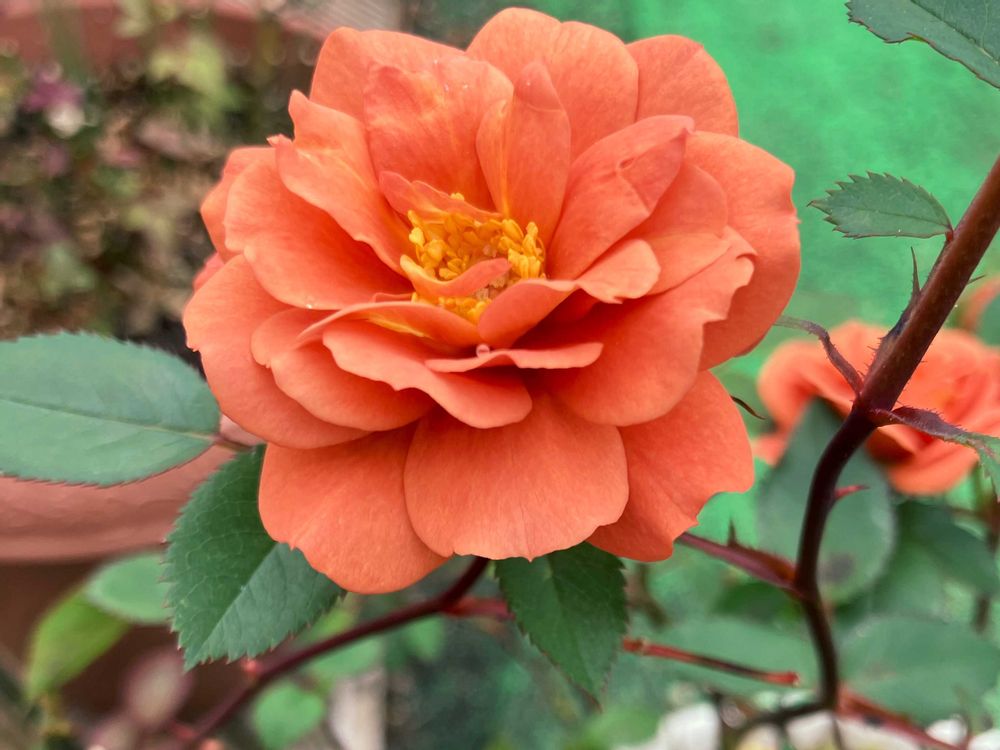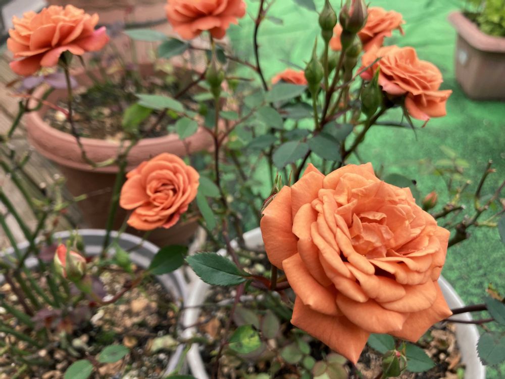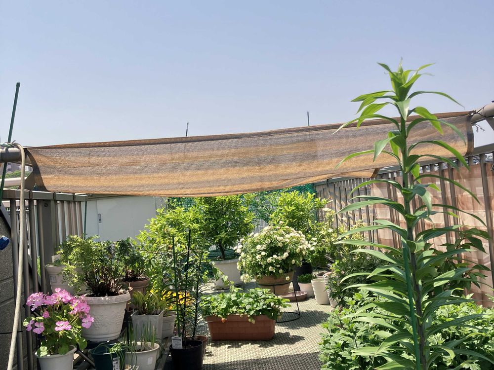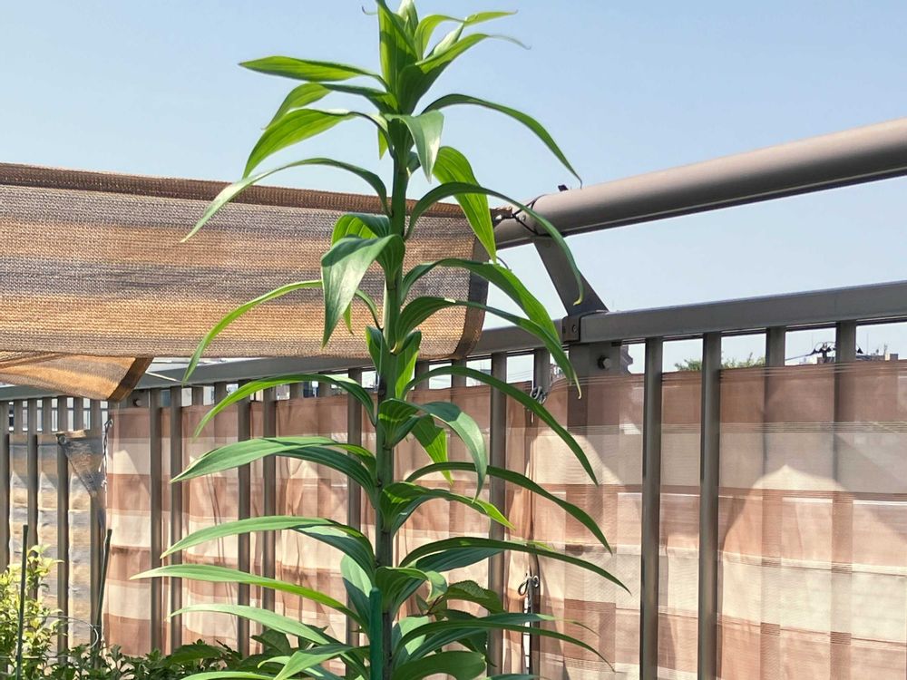 屋上のバラ 名前が可愛い テディベアと毎年植え替えている オリエンタルリリーはどこまで伸びるのかな