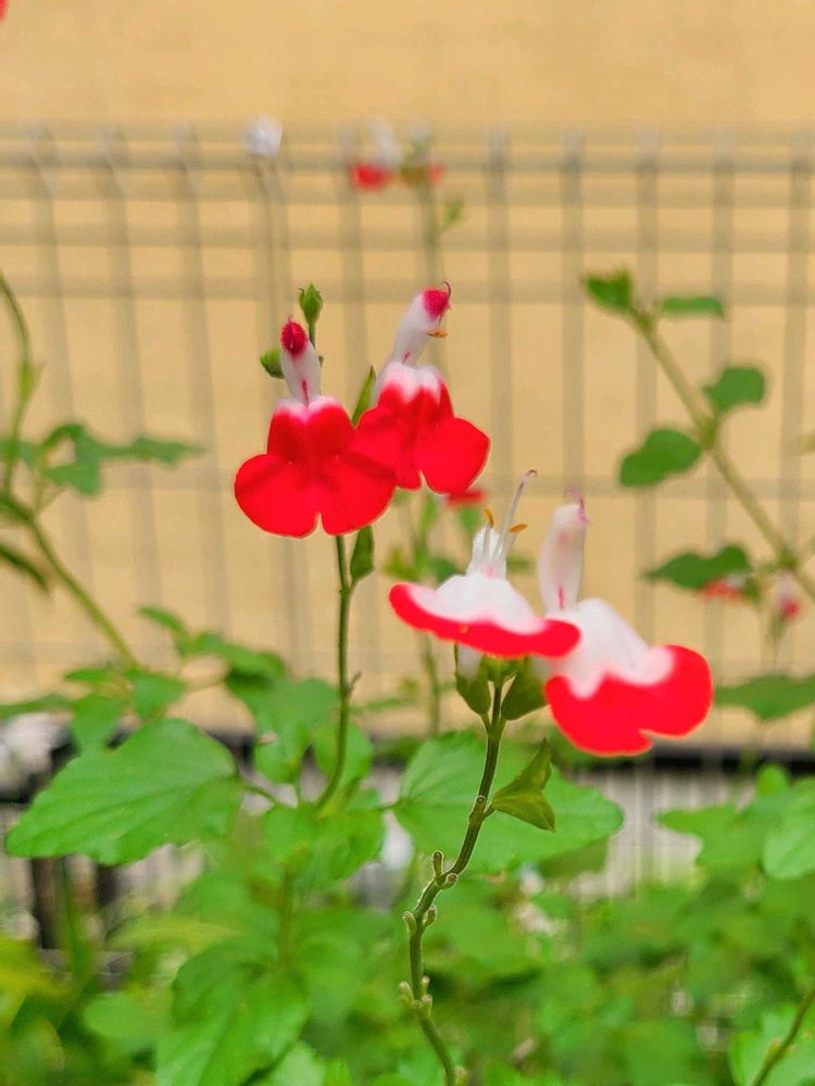 庭にチェリーセージの花がいくつか咲いています!改良種の『イチゴ ミルク』独特な香りが漂います💕