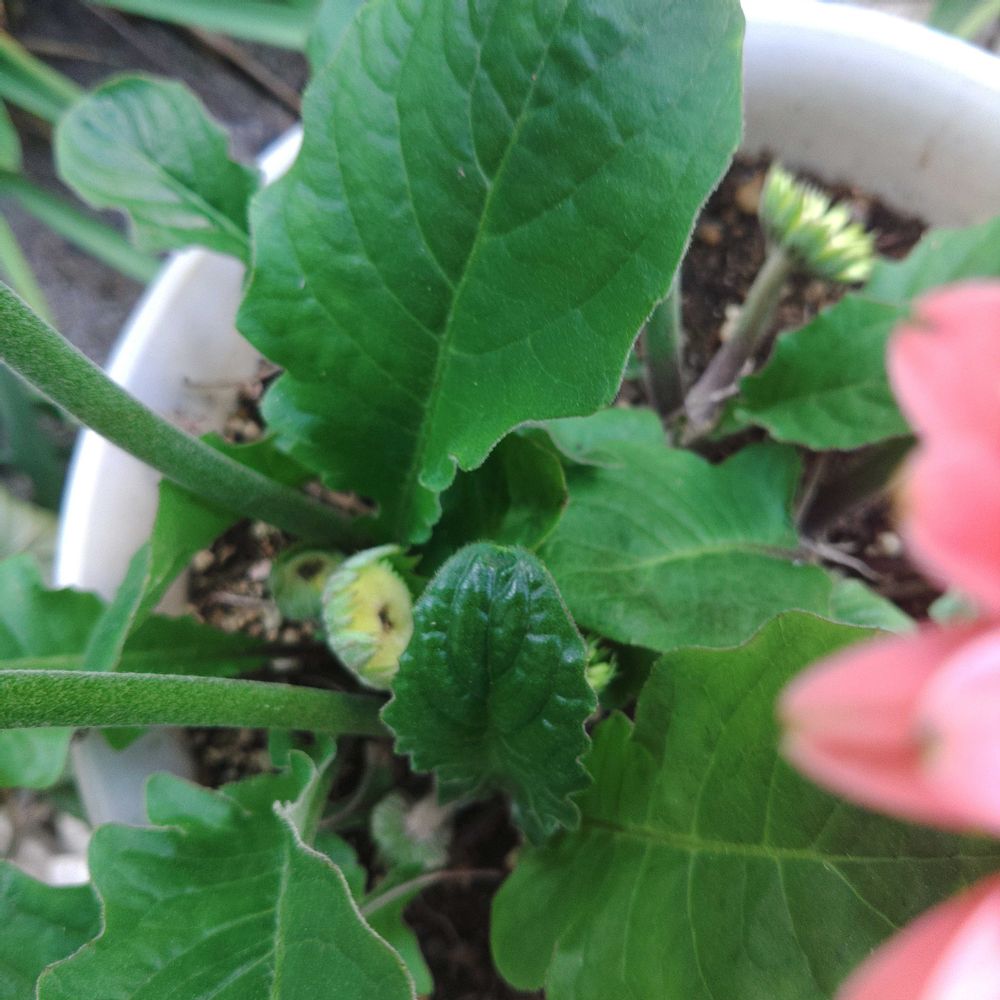 ピンクのガ―ベラに蕾が4個に💚💚💚💚