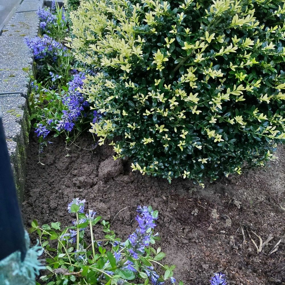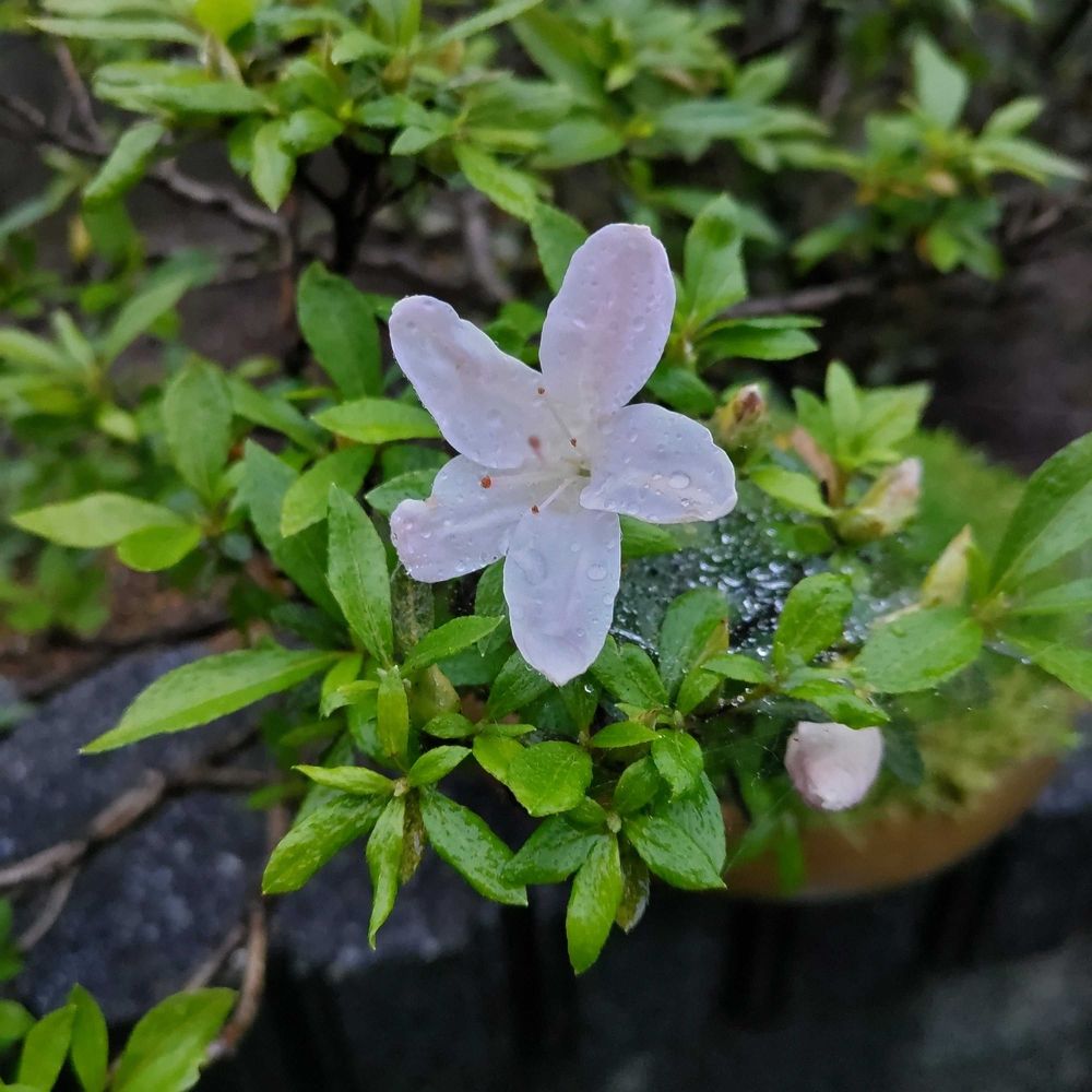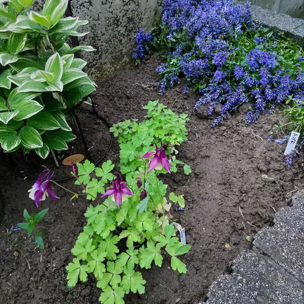 (地味投稿)おばんてます🌜1️⃣「サツキ」一鉢一輪開花してました2️⃣アジュカの増殖のため、50センチ「ヤマオダマキ」移動しました3️⃣4️⃣「アジュカ」ポスタ(四ヶ所)の間と、ツゲ(六ヶ所)の前に移植しました(我が家の顔)咲いてるところごめんなさい🙏
