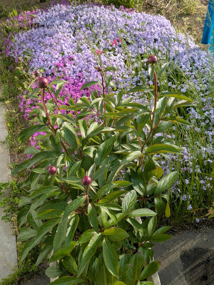 牡丹花が5本と思ってたら葉っぱの陰にもう一つ😅芽かきをしたのに6本咲いてます。昨日妹が来て豪華ねーと喜んだので匂いはクサイよ💦雑巾とか薬草の匂いと教えたら匂ってみて😧わっホントだ‼️生薬とかの匂い💦と苦笑い😅