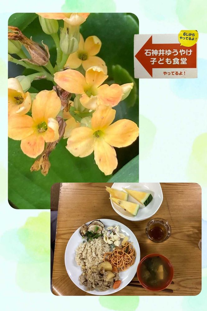 1️⃣バイトに入る前に上野公園内で咲いていました【ベニベンケイ💛】と一緒に子ども食堂のメニュー😋