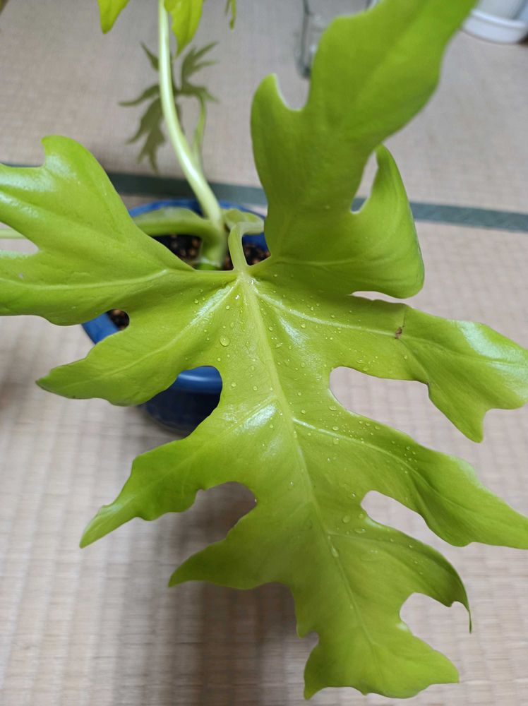 黄緑色のセローム、若い葉のうちから切れ込みが激しくて、カッコいい!