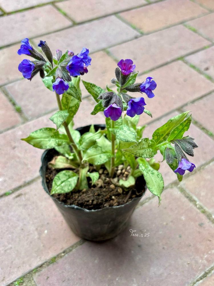 地植えにしていたプルモナリア ダイアナクレア💙💜はポットで待機…どこに植えよう🤔(5/9撮影)
