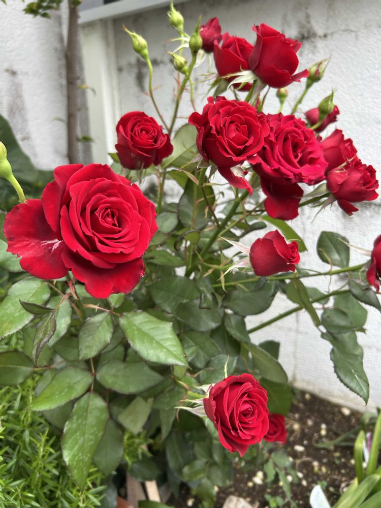 ③知人の会社前花壇のミニ薔薇、栄養アンプルを何本も与えるうちにサイズが4倍位になったそうです😽