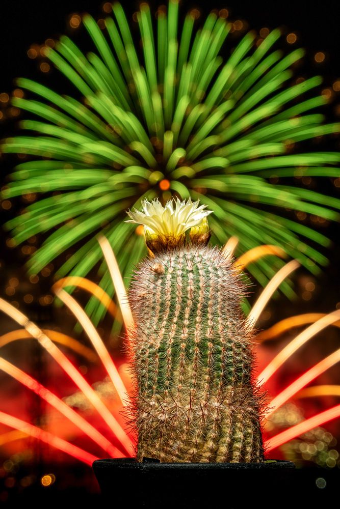 サボテンと花火🎇🌵見たことありそうでなかった素敵な組み合わせですね〜😍✨️きれーい✨️