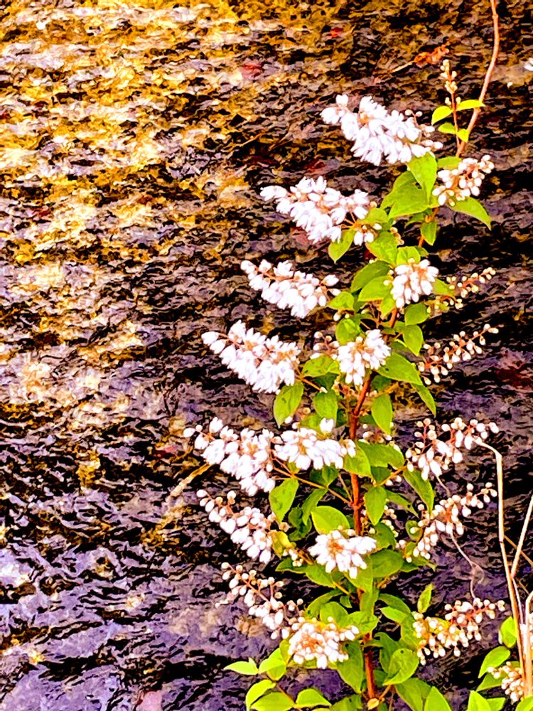 仕事帰りに,真っ白なウツギの花,夕陽射す錦川の流れにの投稿画像