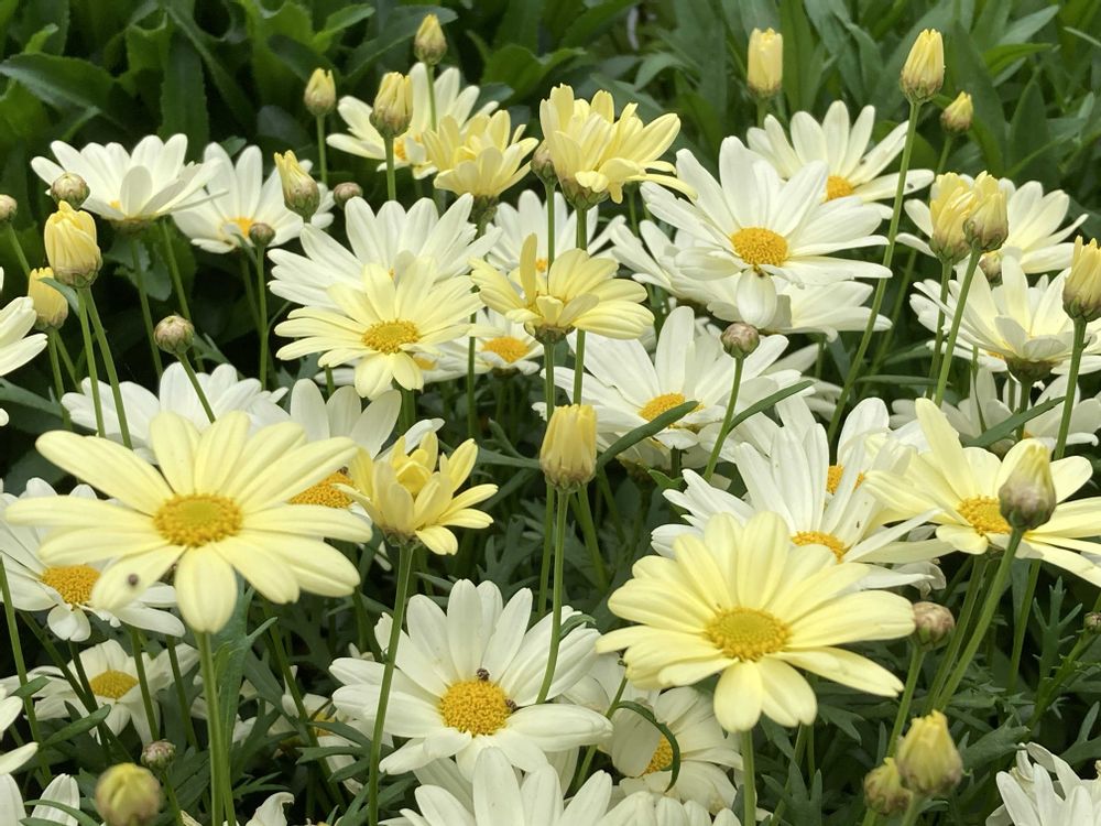 マーガレット・デイジーイエローも賑やかになって来ました…小さかった一株が鉢いっぱいになりつつあります♡