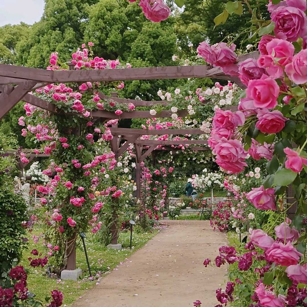 長居植物園の薔薇の回廊、咲き誇るバラ🌹でお祝いです。