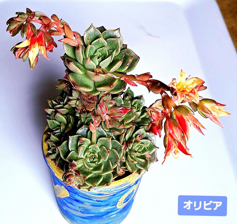 もりもりオリビア、お花は派手めのグラプト☆だなあ🎶