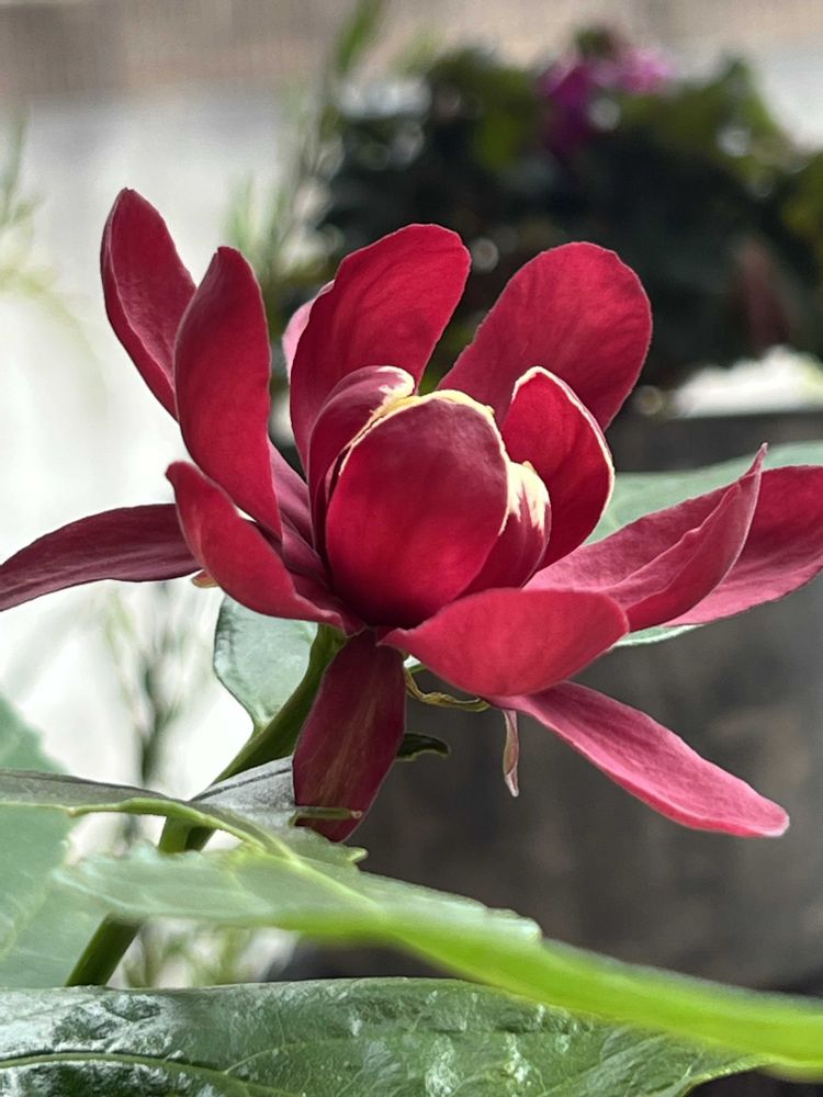 おはようございます☺️PEKO地方晴れ☀️今日も暑そう🥵GWに玄番ファームからお迎えした カリカンサス ハートレッジワイン開花しましたよ♥️