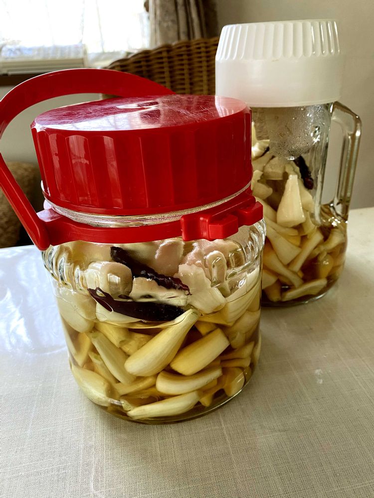 らっきょが好きでない娘たちも自家製のは楽しみにしてくれているので頑張れます💪本当は3キロつけたいところですが、冷暗所がそれほど広くなく、これから梅ジュースも3軒分つけるので置き場所がないんです💦