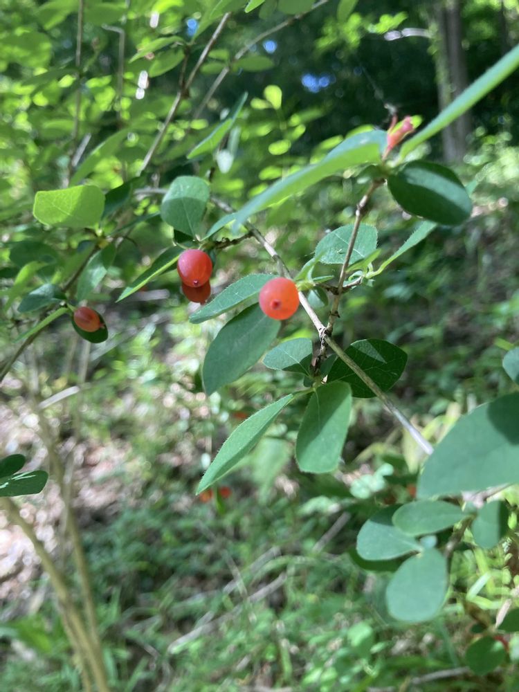 公園の"親緑の丘"の小径際で「ウグイスカグラ」が赤い実を付けていた。