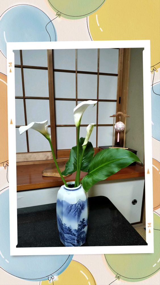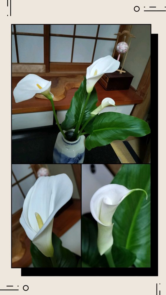 大きなカラーですから、高い花瓶に入れたのはとても良い選択だったと思います。
