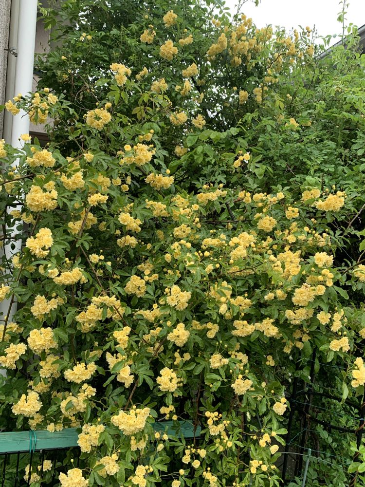 モッコウバラ、雨の重さもあり枝がかなり下がってます💦