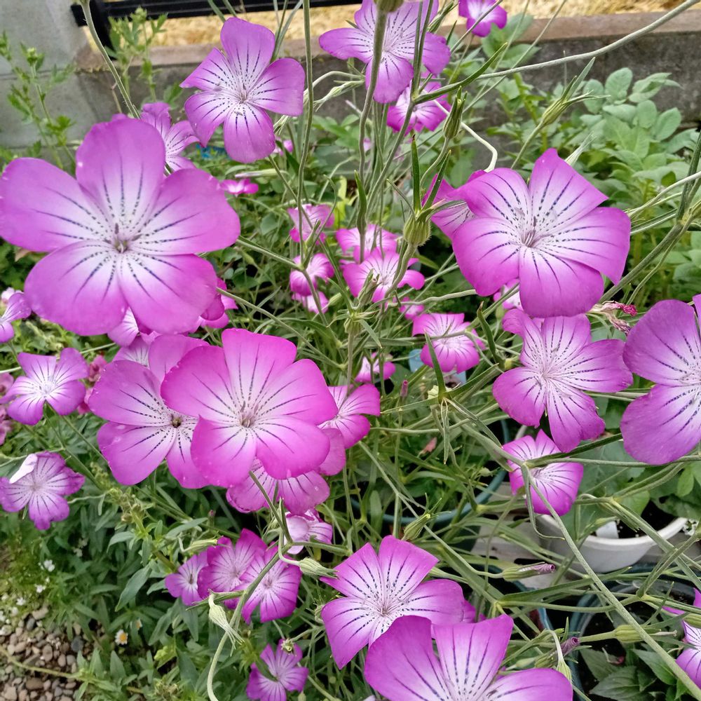 アグロステンマ、お花は可愛らしいんですが、あっちこっち、びょんびょん伸びちゃってます😅😅