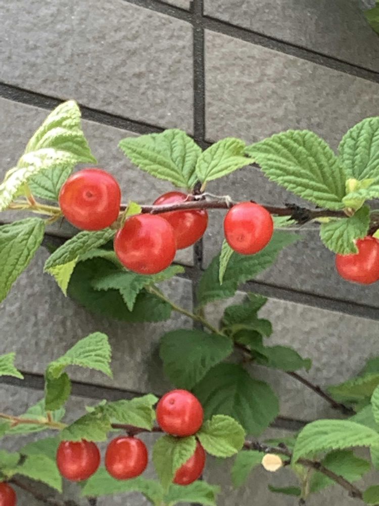 🔴🌿赤くて可愛い実の植物は「ユスラウメ」ではないでしょうか(・・?