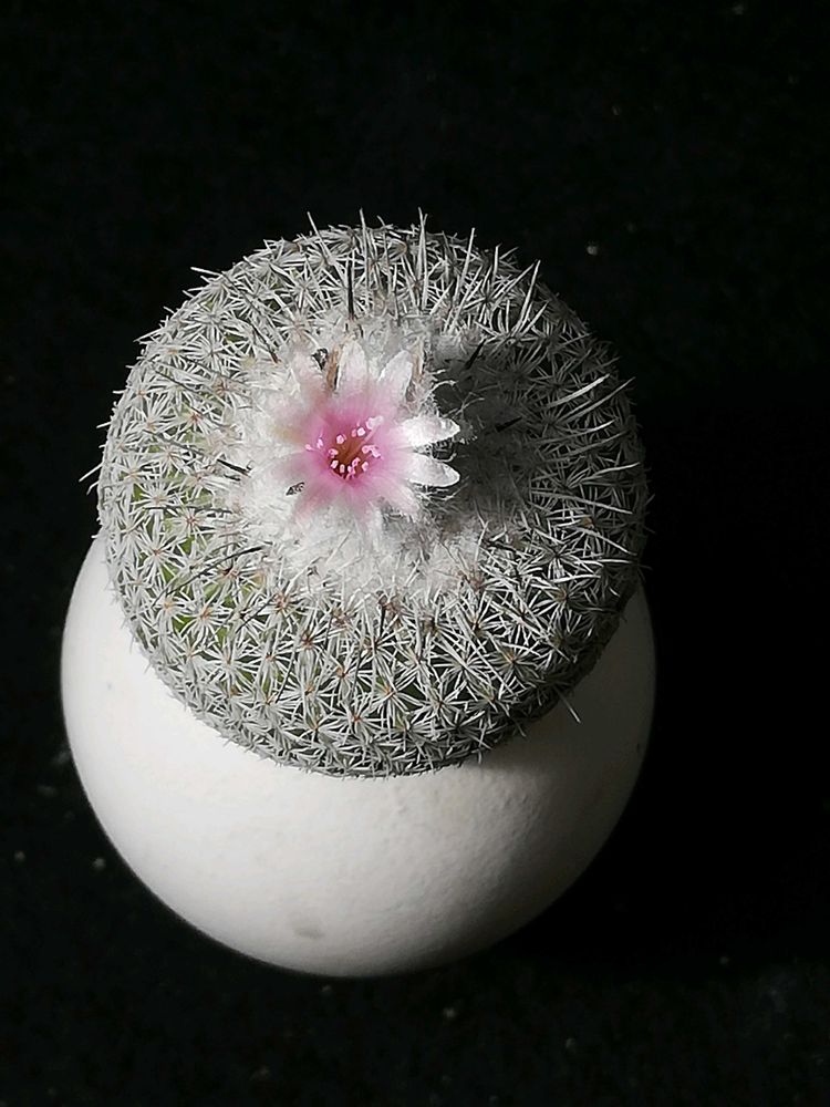 白い卵に白いサボテン…てっぺんにピンクのお花🌸