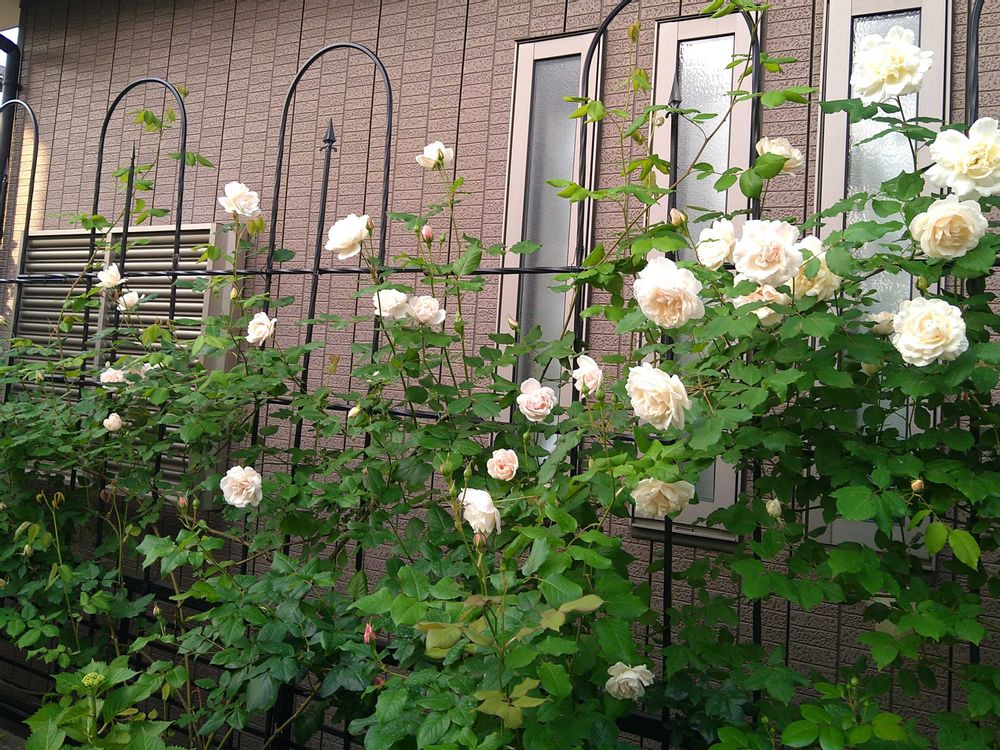 誘引が体力的に大変になってきたので、強剪定しながら育てています🌹