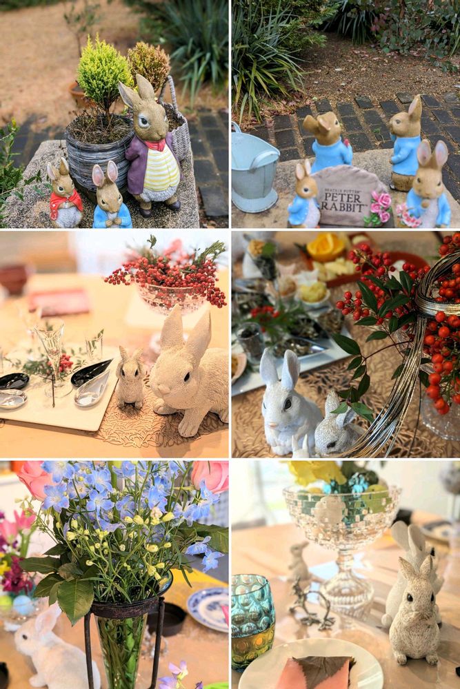 Googleフォトが「ぴょんぴょん飛び回ろう🐇」と題してコラージュしてくれました🍀😊✨2022年12月🐰豊明花き市場㊤🧑🍳お料理教室を受講して💐お花と🐰ウサギとイースターエッグ🥚が飾っていました(*ฅ́˘ฅ̀*)💕2023年4月.•*¨*•.¸¸♬