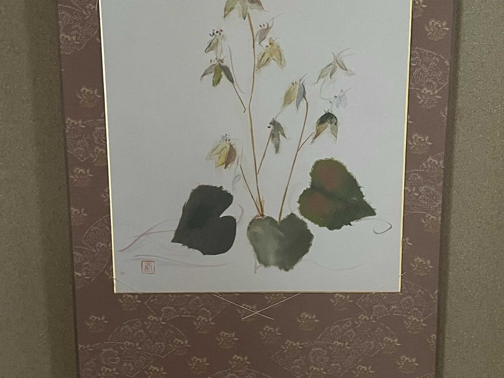 軸の色紙は、友人のおかあさまの押し花の作品。