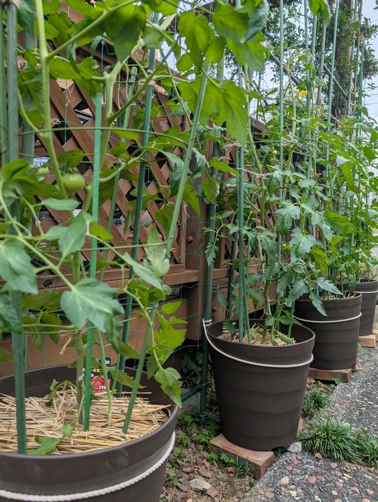 5️⃣草丈が高くなったので恒例の場所移動しました🎶🍅🎶(プランターだから出来る)