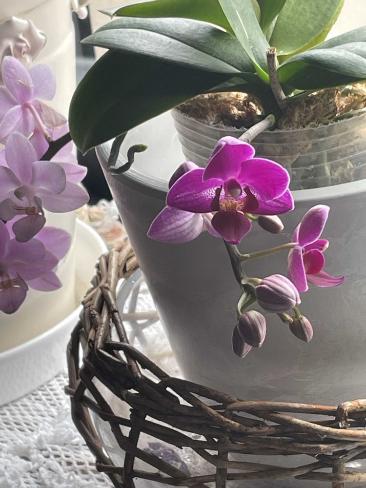 東側窓辺ミニ胡蝶蘭蕾開いて来ました🩷
