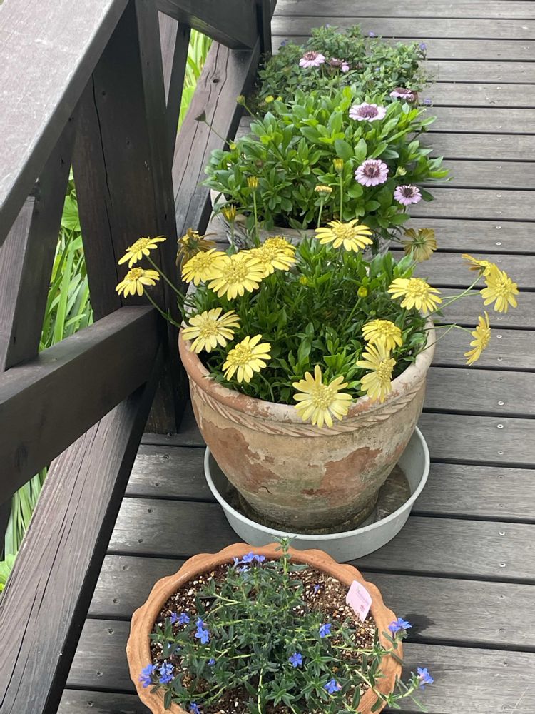 オステオスペルマム3鉢すぐに植え替えてからはイキイキと元気に育ってます😄