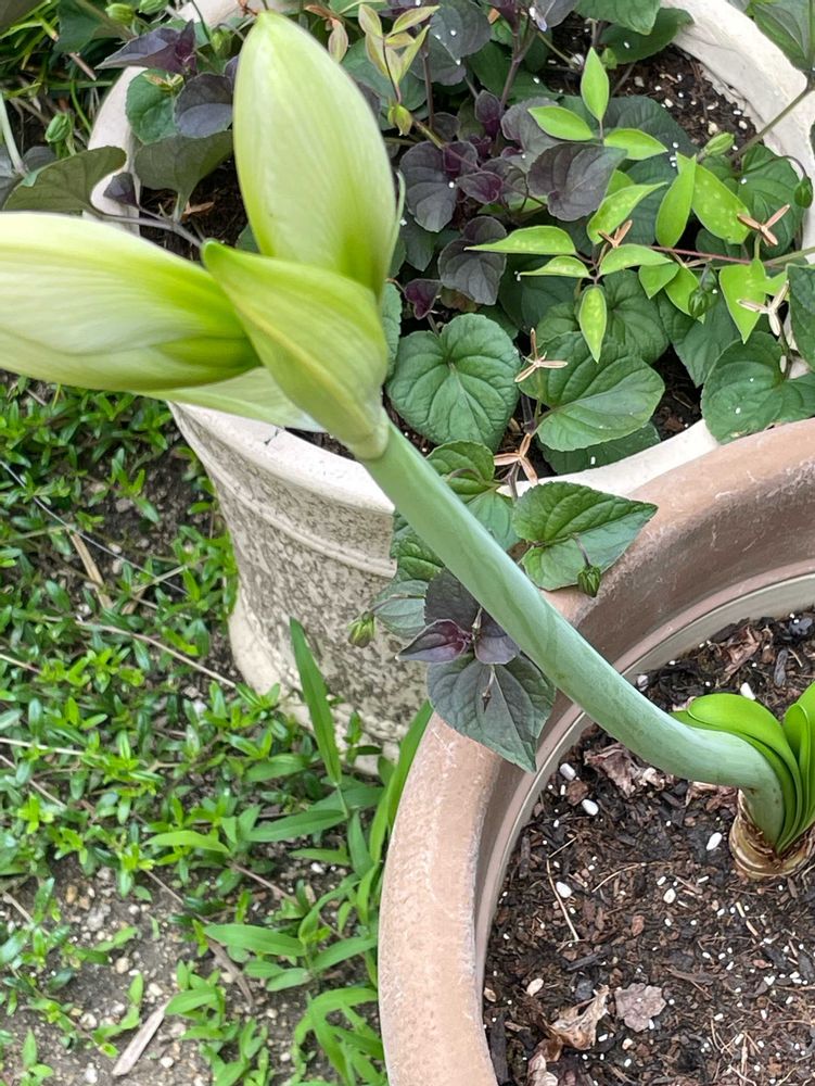 アマリリスウチは茎の伸び悪くずんぐりさんで蕾が出ました💦😭