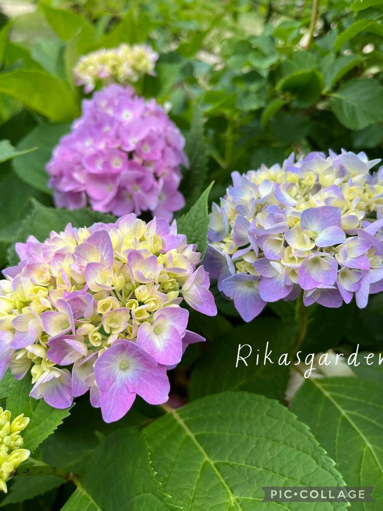 ②四季咲き紫陽花「霧島の恵」も咲いて来ました。7〜8年くらい庭にいるかな?