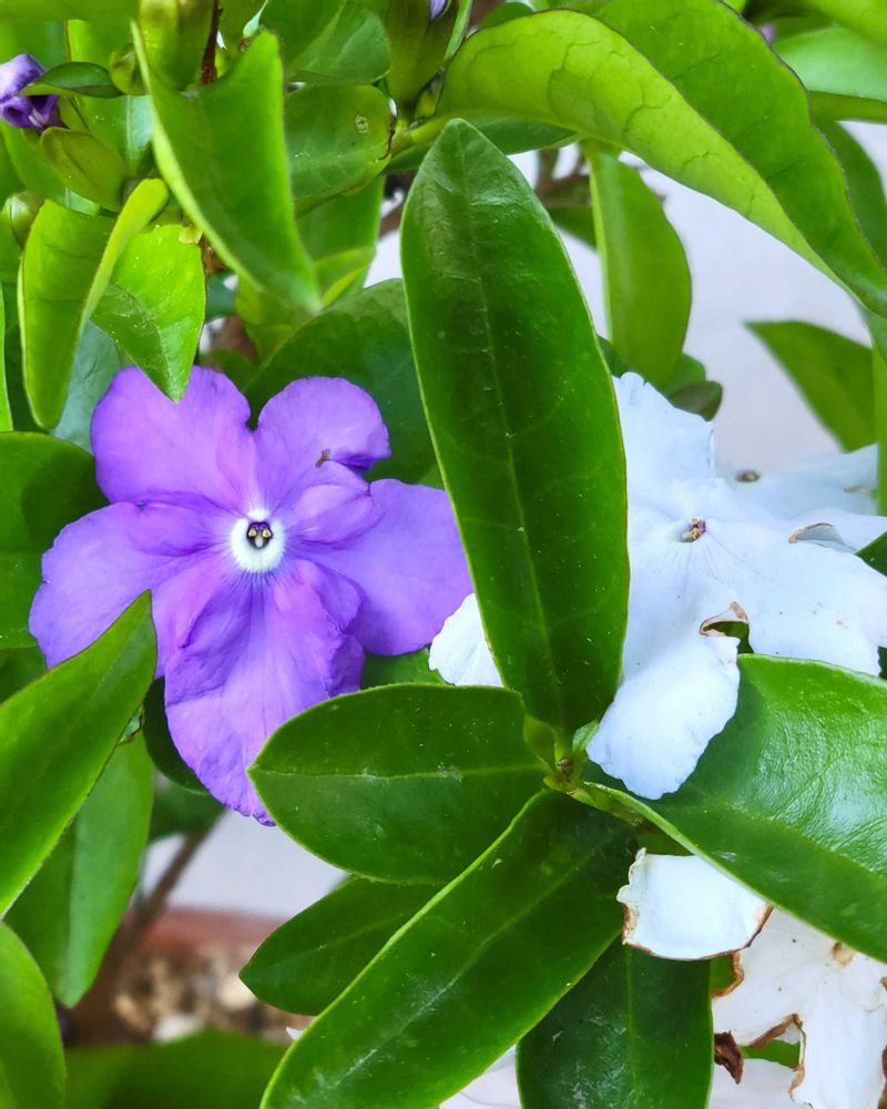 ニオイバンマツリは開花してすぐは紫色をしていますが、その色がだんだんと薄れてきます。薄紫になったあとは最終的に白くなる特徴がニオイバンマツリにはあるのですよ。