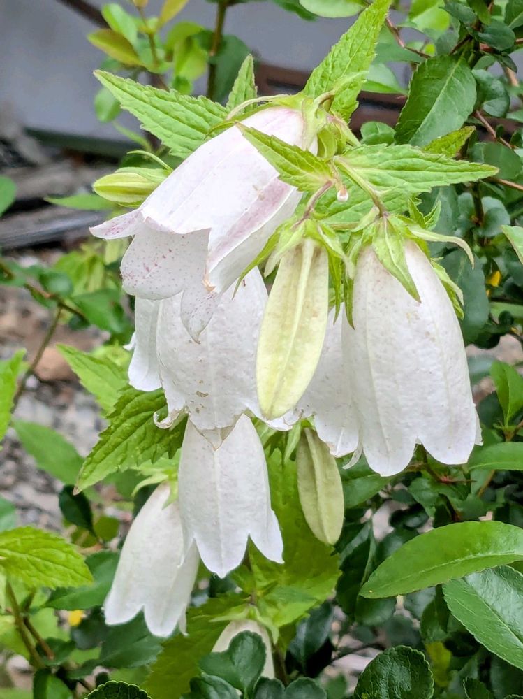 ホタルブクロとカンパニュラは、区別されてる⁉️どちらもキキョウ科に属する多年草で、花が釣鐘型に似ていることから「釣鐘草」とも呼ばれることがあります。しかし、ホタルブクロはカンパニュラの一種なので、総称が「カンパニュラ」😶