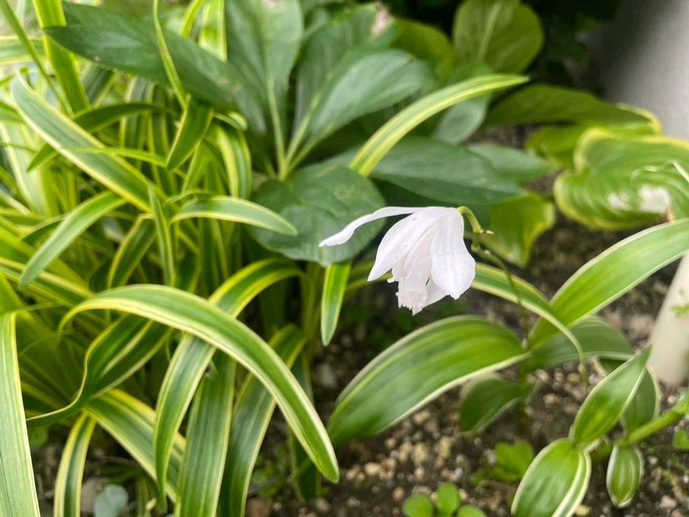 紫陽花コーナーの足元に白花の斑入りシランを増やしました😀今までは白いカラーだったんですが、ずっと違和感があったので掘り上げて実家に出戻り🤣