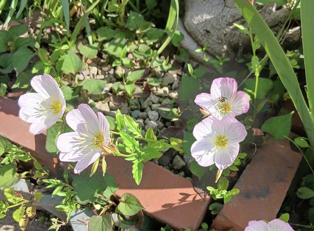 桃色月見草は妹が好きな花でなんとか溢れ種から出た芽を1ヶ所に集めてみました。