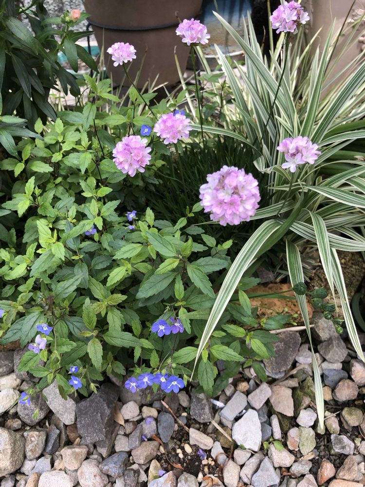 ②アルメリアさん🩷遅咲きのベロニカも咲いています💙