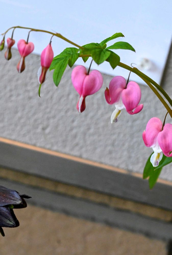昨年迄植木鉢の白色、ピンク色のタイツリソウが咲いていましたが‥…今年は白色の花が咲かず2鉢共ピンク色が咲きました。白色はどこへ…