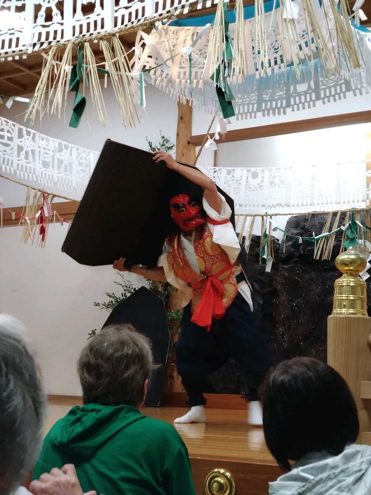 ③手力雄命の舞。まさに天の岩戸の岩を持ち上げたところ。